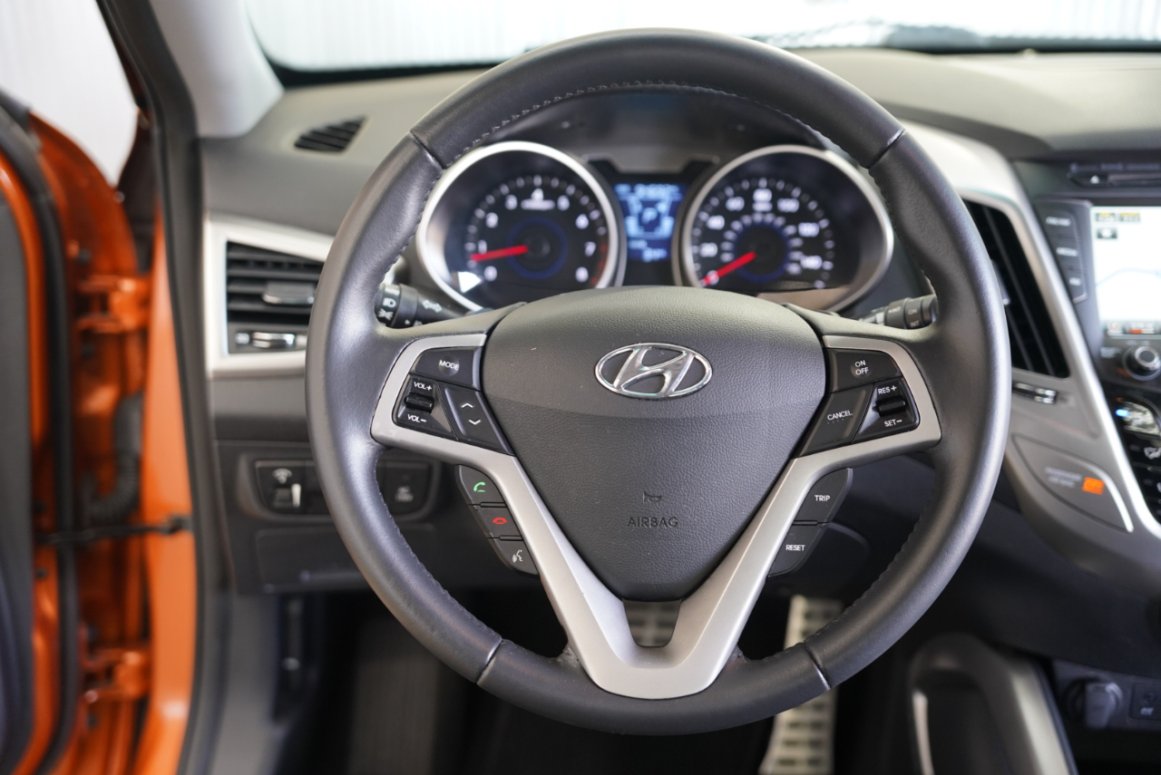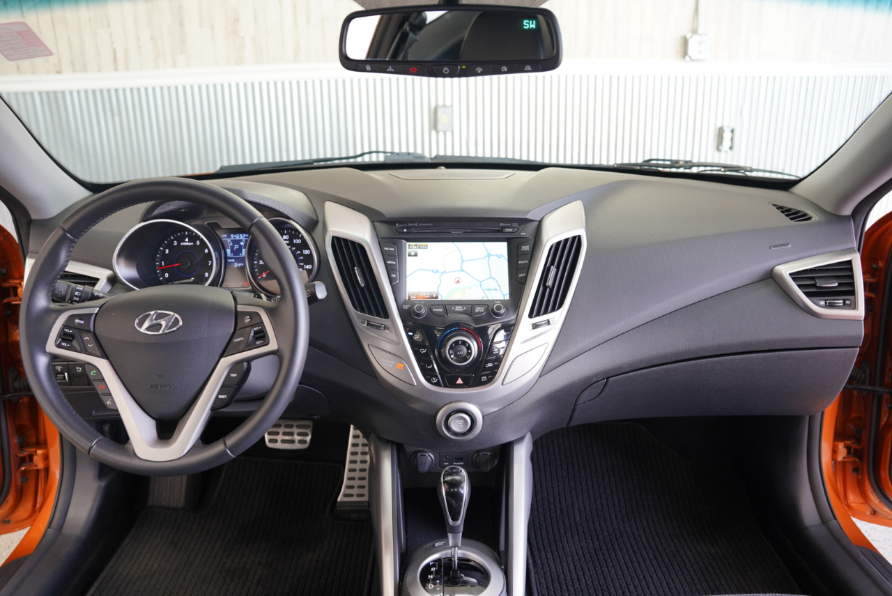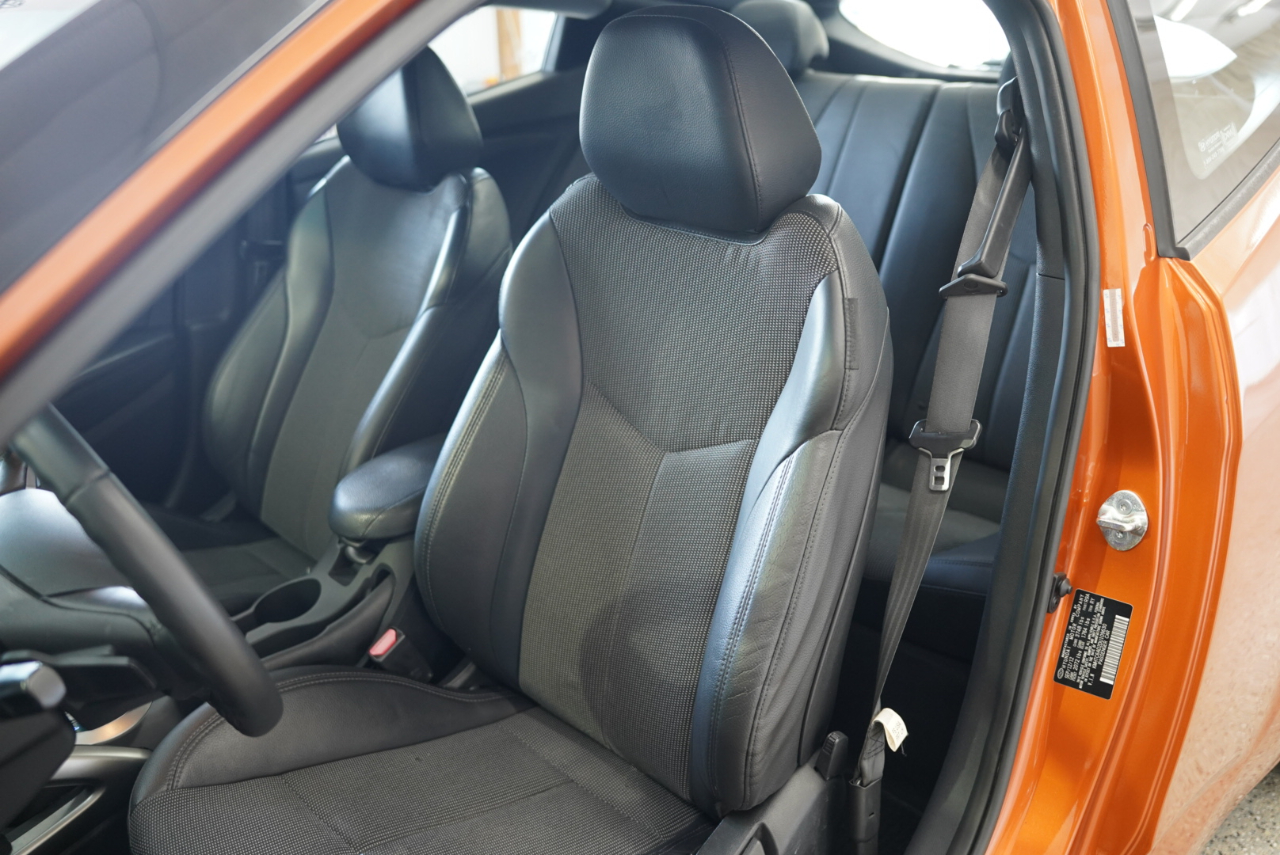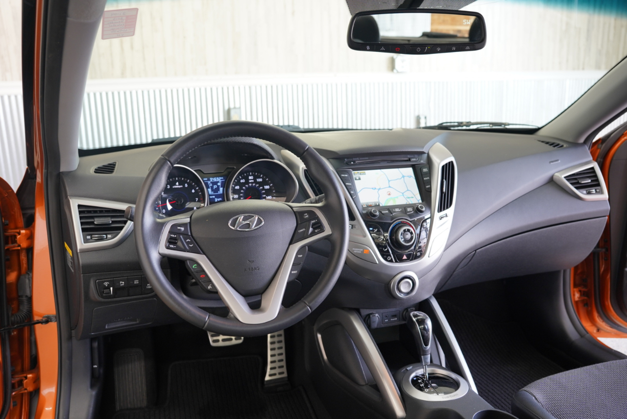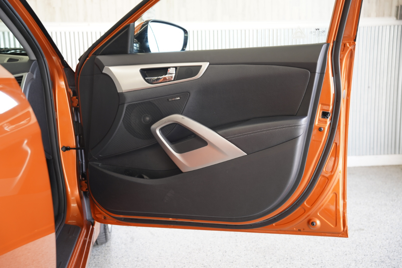 This 2013 Hyundai Veloster in Vitamin C is an awesome find — a super fun 3-door hatch with sharp styling, navigation, and a long trail of documented service throughout its life. It comes finished in one of Hyundai’s most iconic colors and paired with a Black interior featuring leather-trimmed seating.