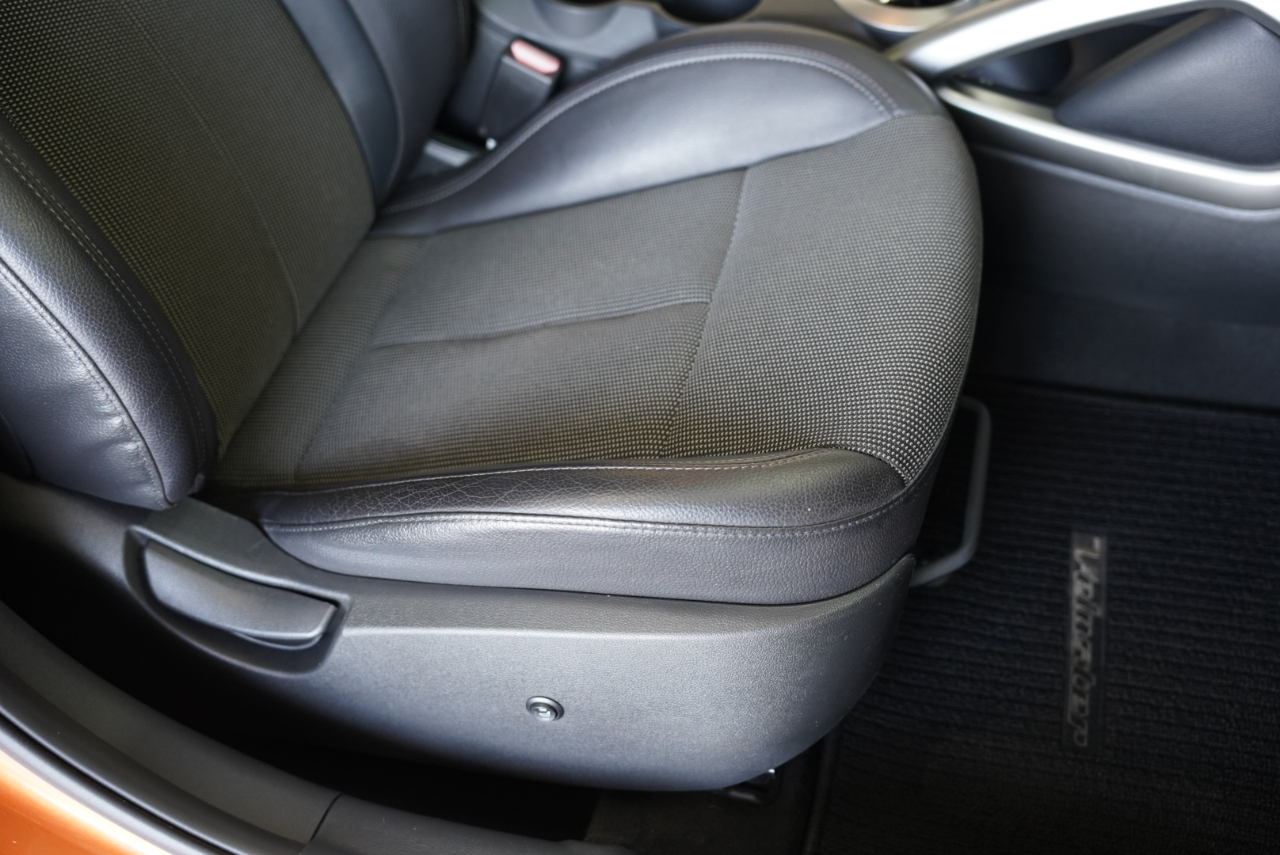 Finished in Vitamin C, this Veloster stands out in all the right ways. The paint shows nicely, the wheels look great, and the signature 3-door layout gives you a unique mix of style and practicality. Inside, the leather-trimmed Black interior is clean with a modern center console and clear touchscreen display.